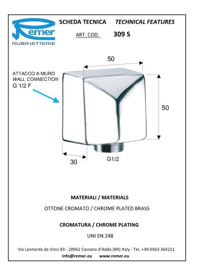 Il design quadrato permette un'installazione semplice e intuitiva, rendendo questo raccordo compatibile con una varietà di configurazioni impiantistiche. Sia che tu stia ristrutturando il tuo bagno o realizzando nuovi impianti, l'attacco presa acqua di Remer si adatta perfettamente alle tue esigenze.