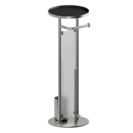 Realizzata in acciaio spazzolato con dettagli neri, questa piantana offre un'estetica raffinata e discreta, capace di armonizzarsi con diversi stili di arredamento bagno. Il vetro integrato conferisce un tocco di leggerezza visiva e facilita la pulizia quotidiana, mentre l’acciaio garantisce robustezza e durabilità nel tempo, resistente a graffi e corrosione.